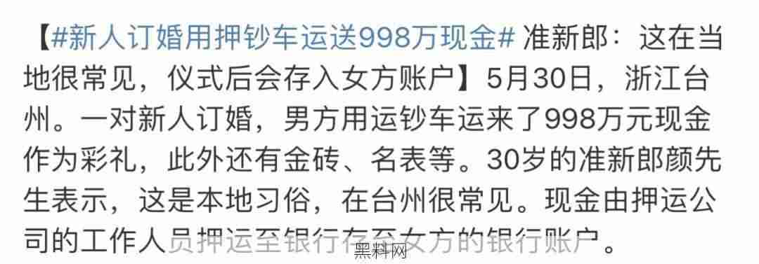 台州订婚这么豪横吗?运钞车押送998万现金的彩礼和金砖?