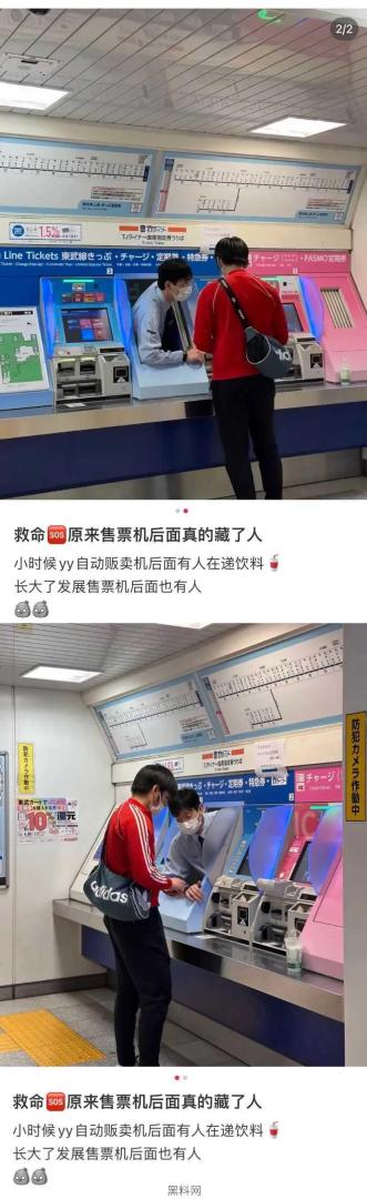 原来售票机后面真的藏了人。