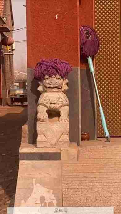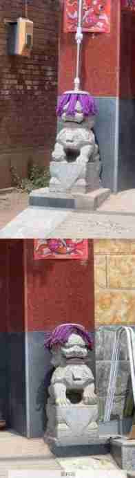 石狮子也没想到会被做发型,哈哈哈哈有个性