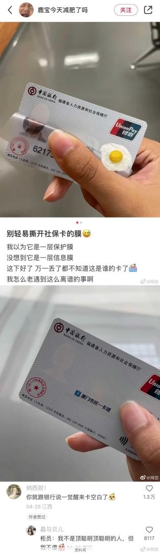 别轻易撕开社保卡的膜。