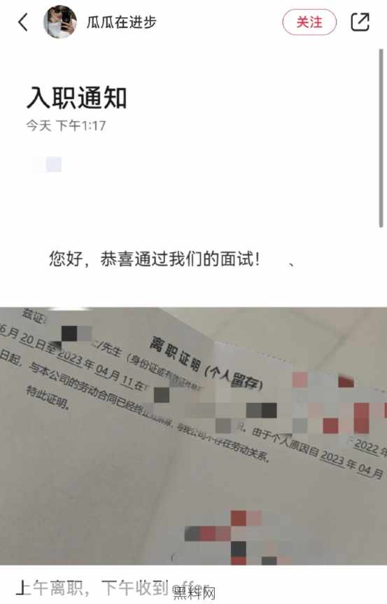 上午离职下午收到offer。