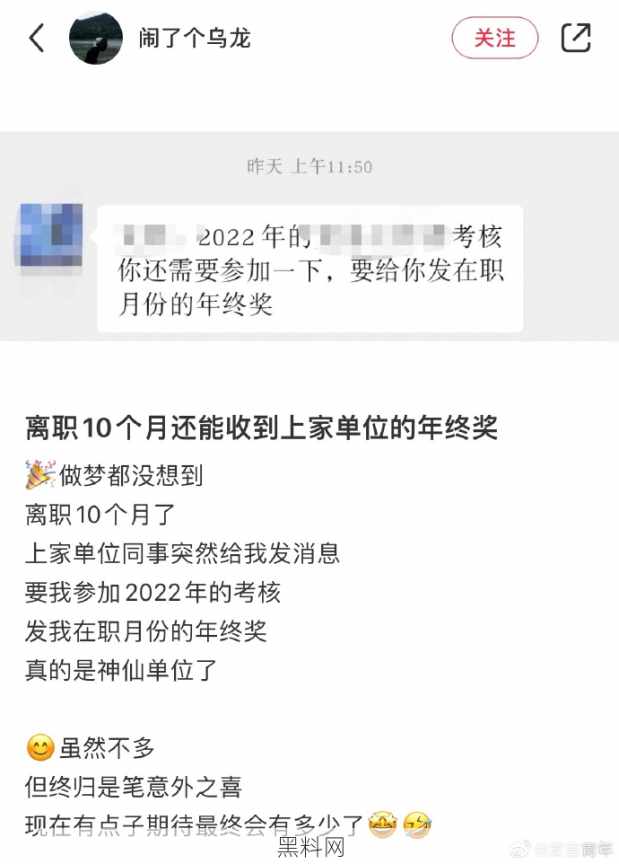 离职后收到前公司的年终奖。