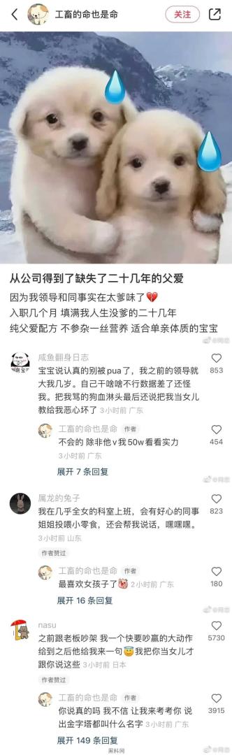 在公司得到缺失几年的父爱。