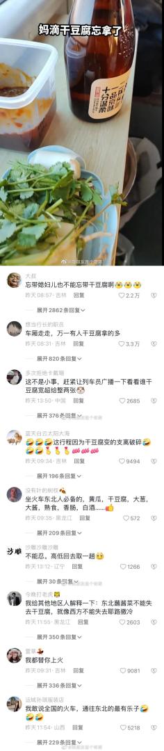 东北人坐火车不能没有干豆腐 。