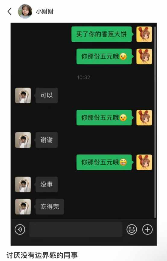 讨厌没有边界感的同事。