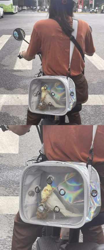 有人上班背鸟。