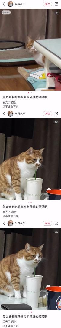 猫猫吃鸡胸肉卡在牙缝里了。