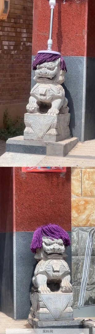 石狮子也没想到会被做发型,哈哈哈哈有个性