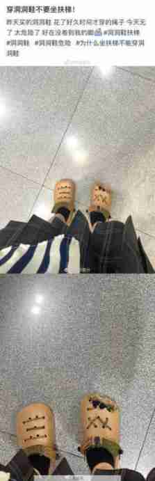 穿洞洞鞋千万不要坐扶梯!