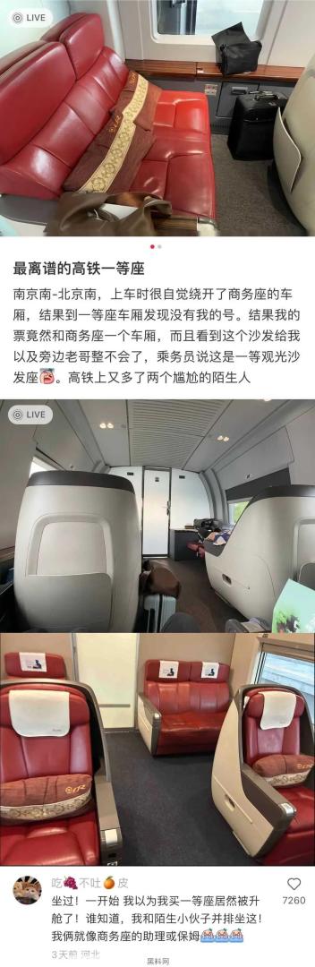 最尴尬的高铁一等座。