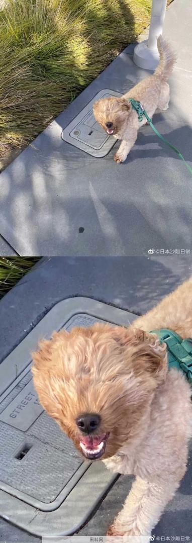 不畏强风的狗子的笑脸。